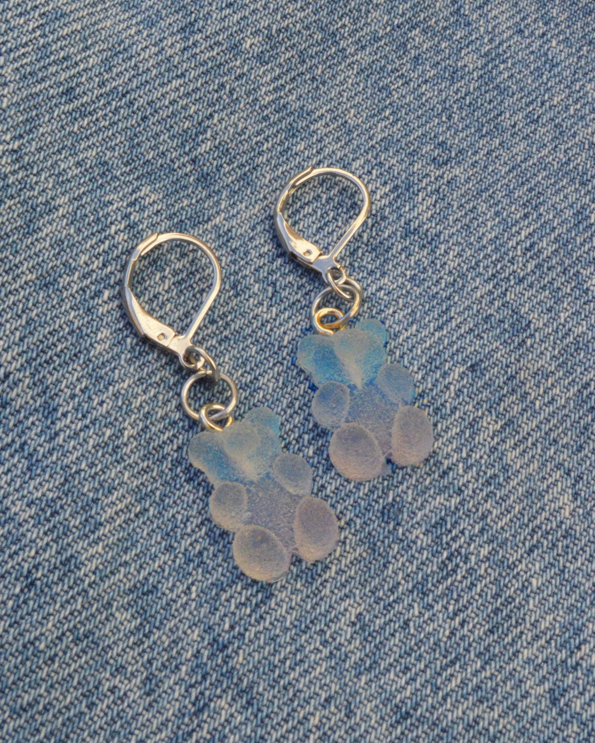 - Los dijes tienen efecto afelpado y el color es un degrade azul/lila.