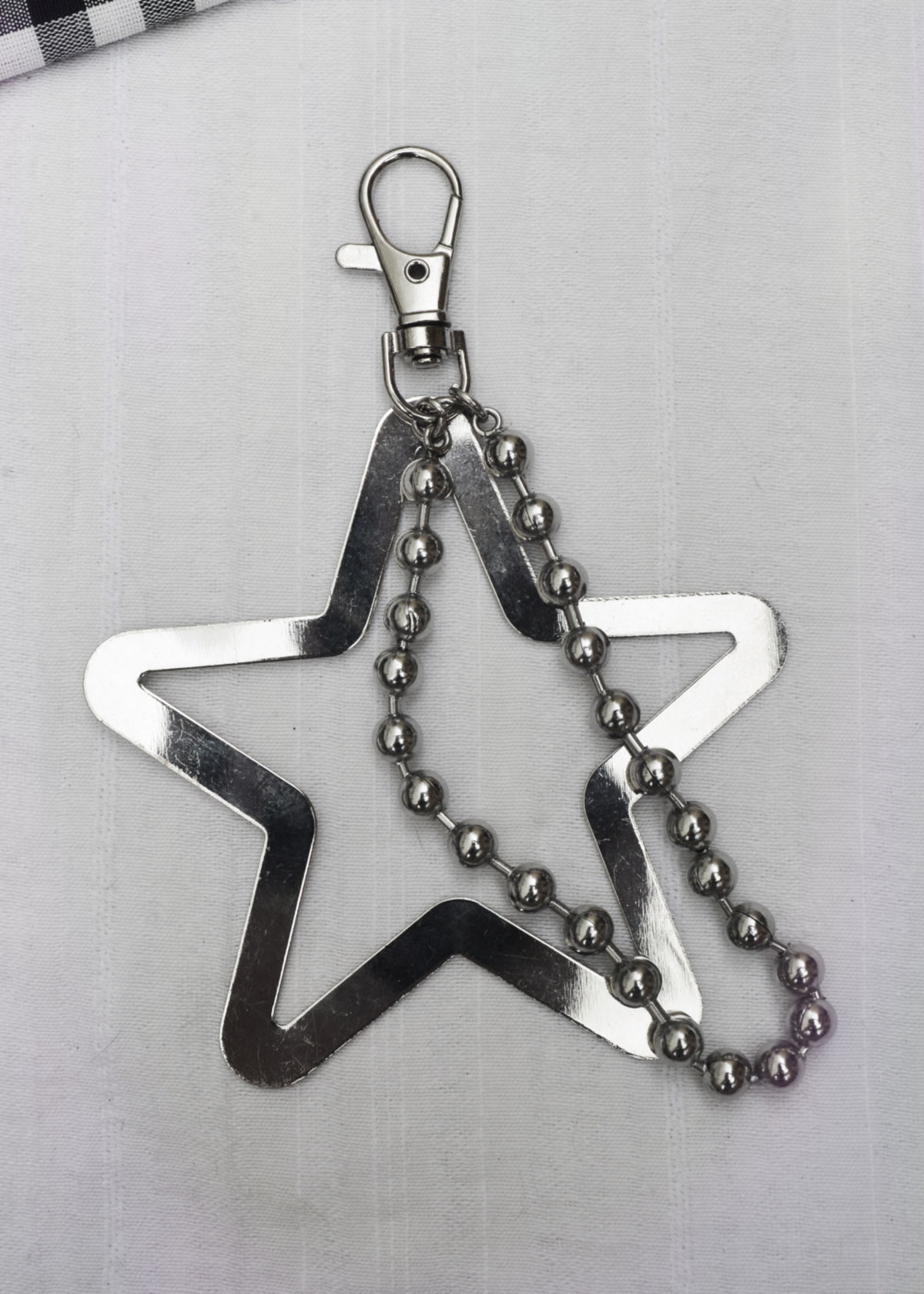 Llavero con mosquetón de hierro, cadena de acero quirúrgico y dije grande de metal