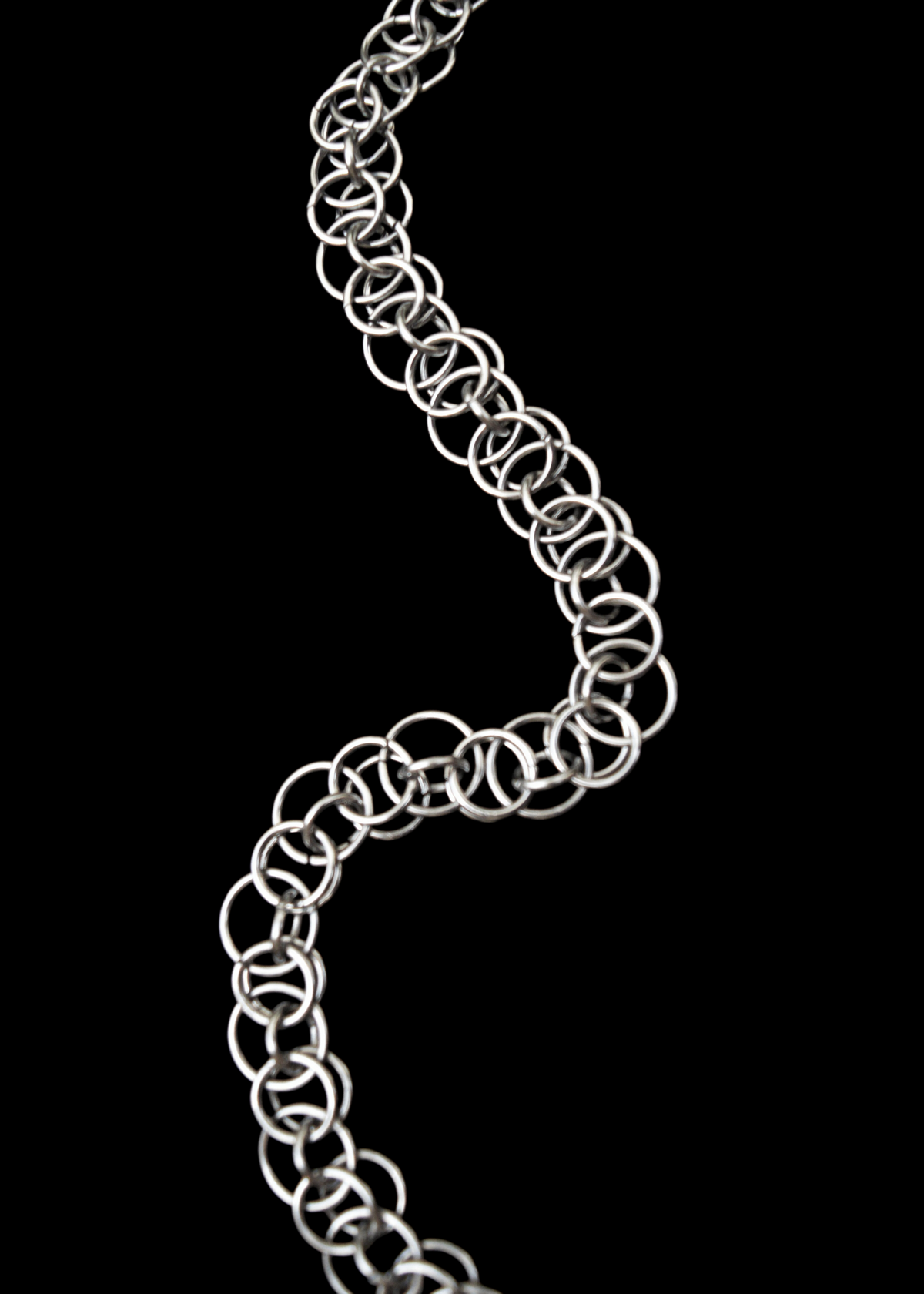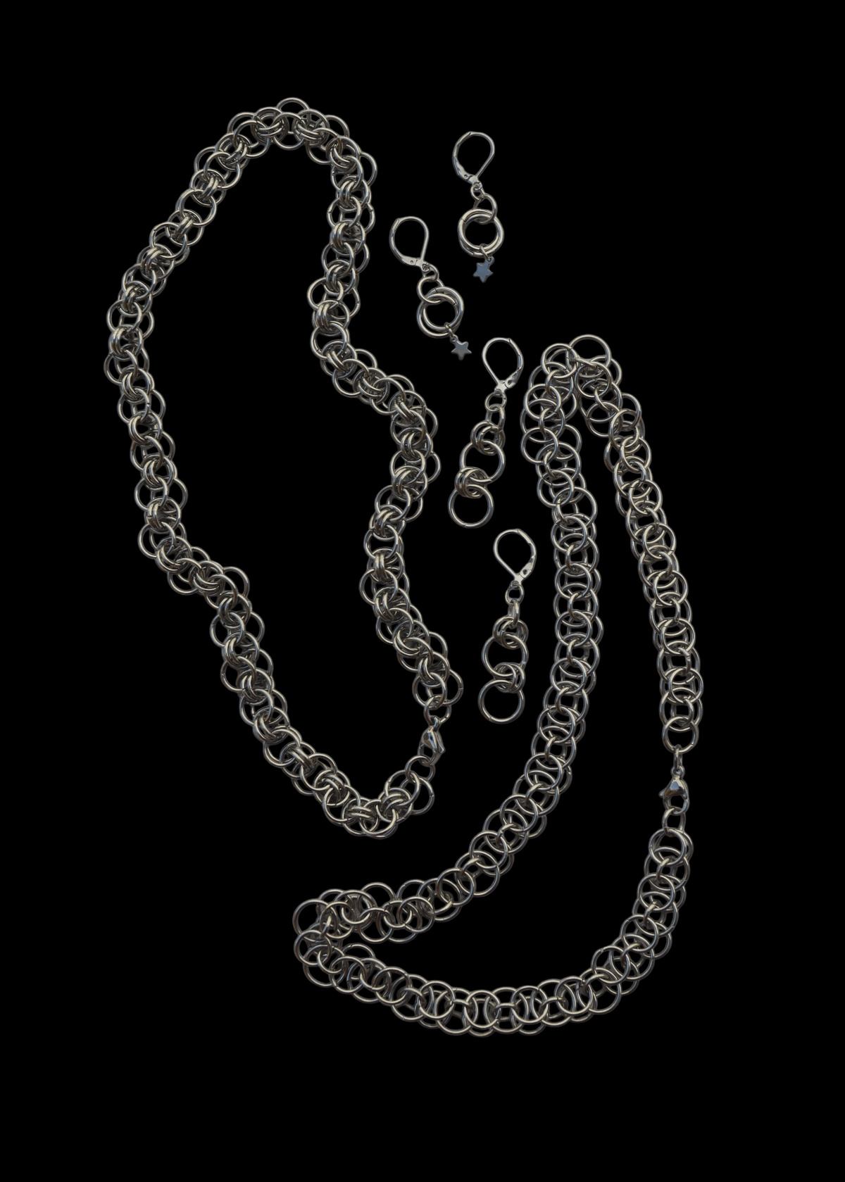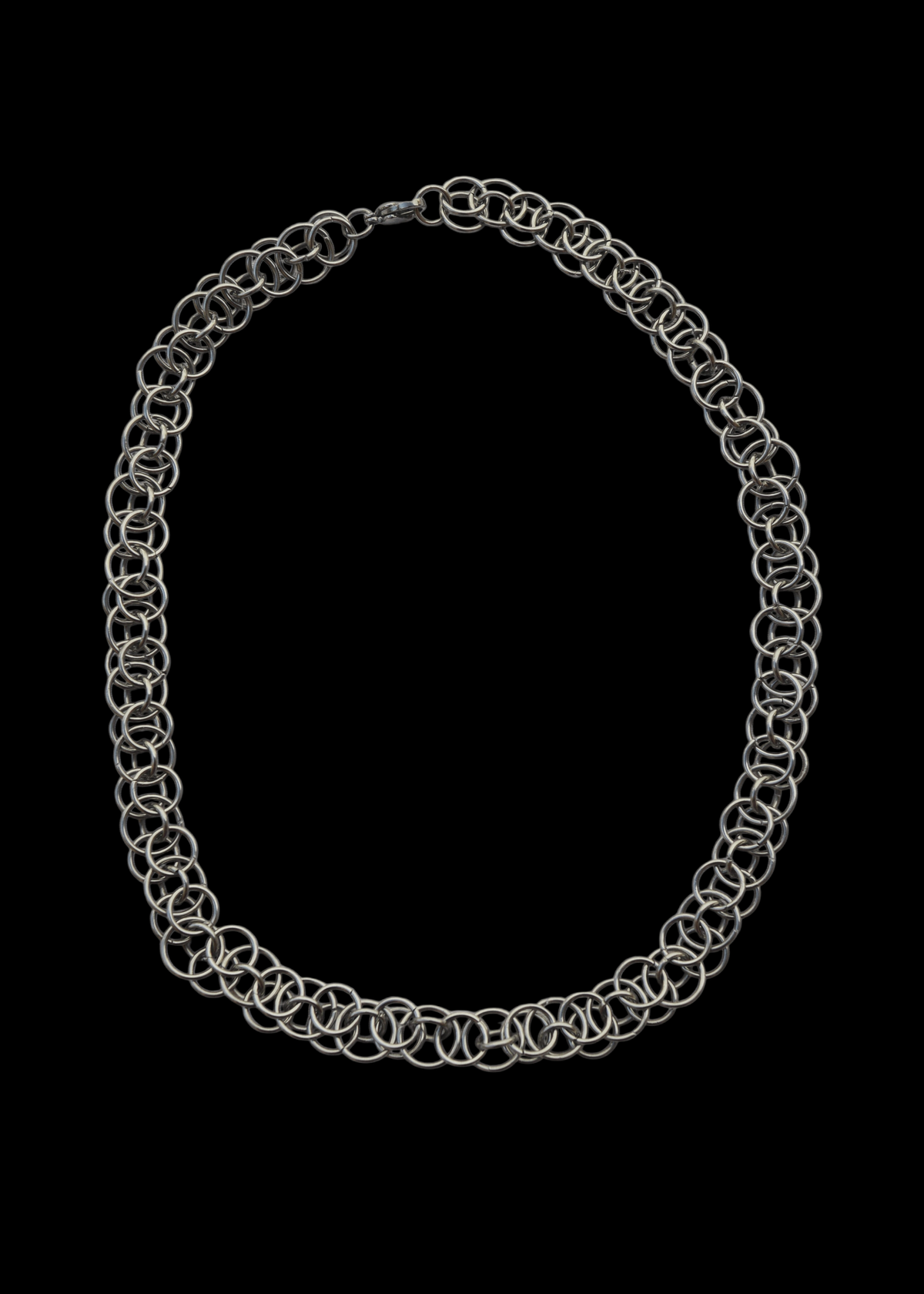 - Collar tejido a mano con argollas y piezas de acero quirúrgico